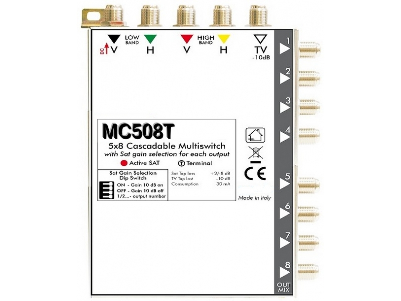 Questo Mini MULTISWITCH 5 in 8 out TERMINALE ATTIVO è prodotto interamente in Italia.