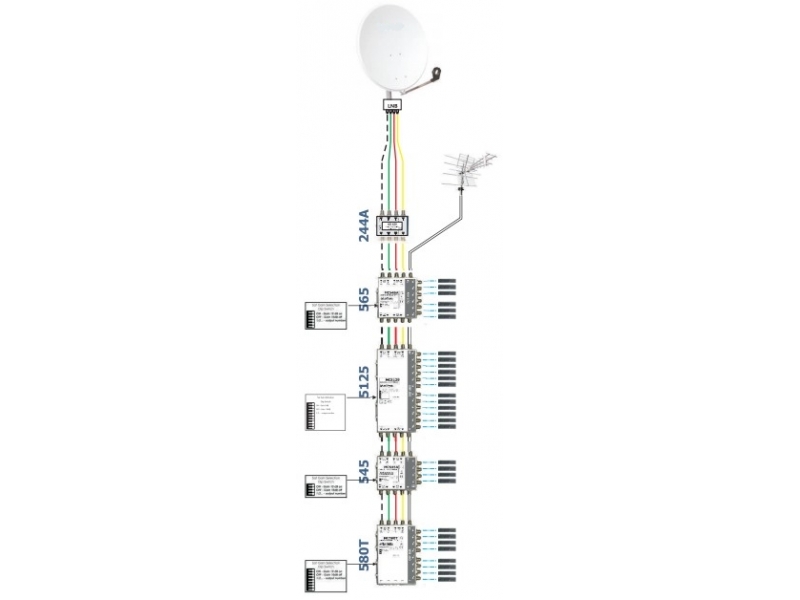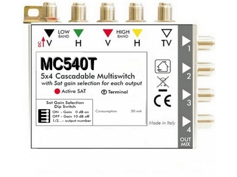 Questo Mini MULTISWITCH 5 in 4 out TERMINALE ATTIVO è prodotto interamente in Italia.