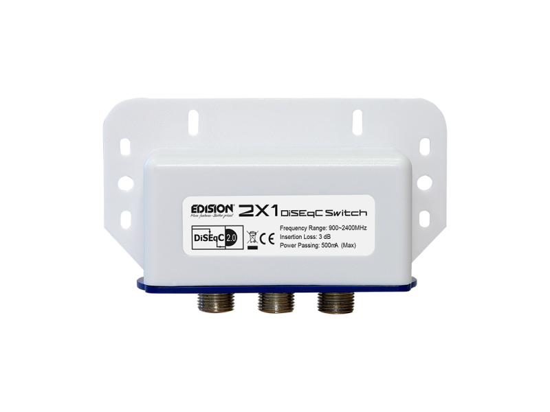 Switch DiseqC EDISION 2x1, per collegare fino a 2 satelliti a 1 ricevitore. Con alloggiamento in plastica di qualità, struttura idrorepellente.