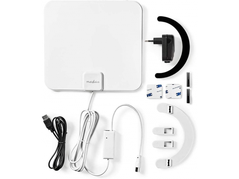 Questa antenna DVB-T/T2 Nedis® da interno garantisce una ricezione stabile dei canali gratuiti e a pagamento (in presenza di un abbonamento attivo) e dei segnali radio FM. L'antenna presenta un design compatto ed elegante che si armonizza con qualsiasi ambiente interno, senza creare disordine.