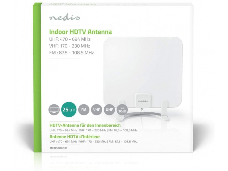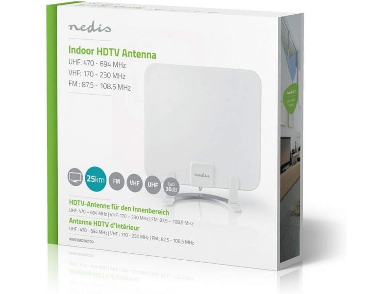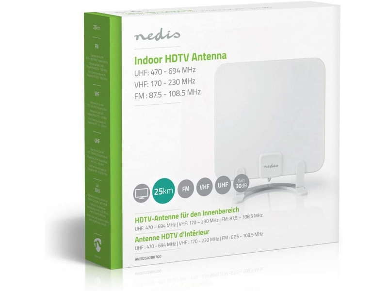Antenna HDTV da Interno | 0-25 km | Guadagno 30 dB | FM/VHF/UHF | Bianco -ANIR2502BK-