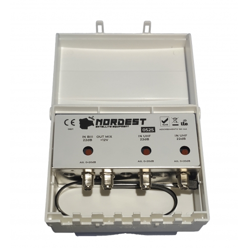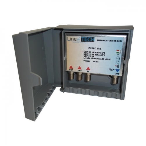 Amplificatore da palo 3 IN BIII - UHF - UHF 22 db regolabile, assorb. 150mA, 118 dBuV LTE