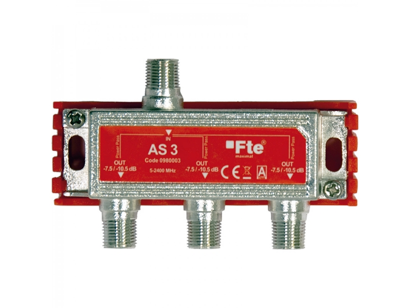 Divisori blindati induttivi in classe A terrestri e satellitari da 5 a 2.400 MHz, a tre uscite con attenuazione tipica di 6 dB