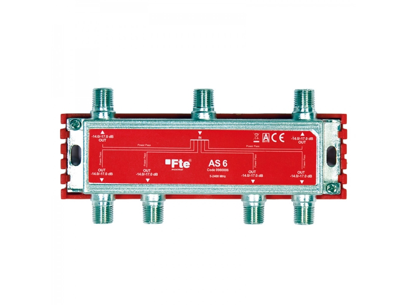 Divisore blindato induttivo in classe A terrestre e satellitare da 5 a 2.400 MHz, a sei uscite con attenuazione tipica di 12 dB