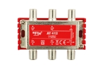 Derivatori blindati induttivi in classe A terrestri e satellitari da 5 a 2.400 MHz, ad una uscita di passaggio con attenuazione tipica di 4 dB e quattro uscite in derivazione con attenuazione di 12 dB