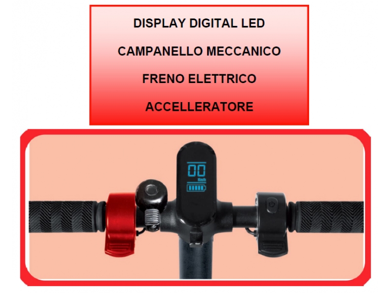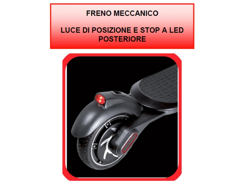 Per questo monta un freno elettrico anteriore e uno meccanico posteriore, un ampio display a LED da cui tenere sempre