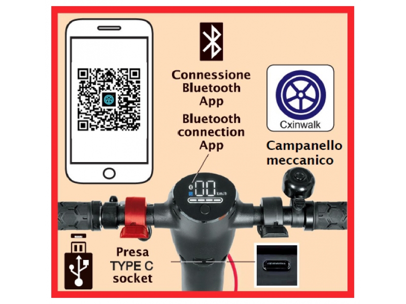 con il cellulare tramite “BLUETOOTH” con apposita “app” e presa TYPE C (micro USB) per poter ricaricare in