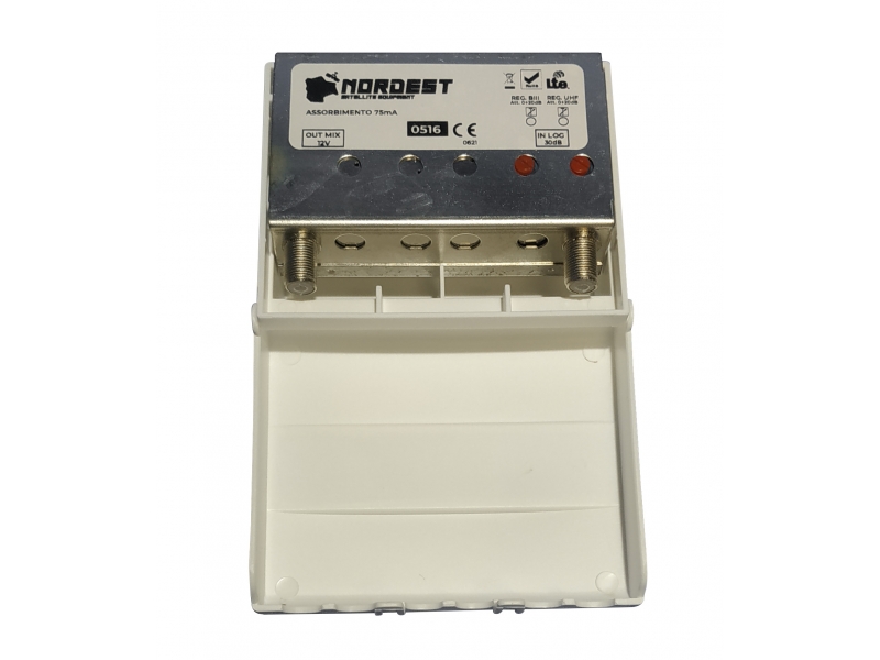 Amplificatore da palo 1 IN LOG 30 db regolabile, BIII - UHF solo regolazione, assorb. 75mA LTE