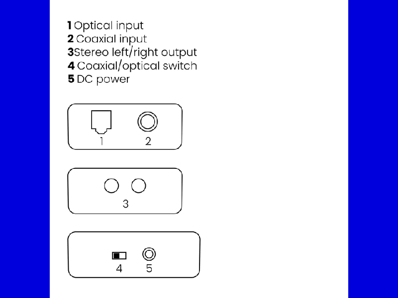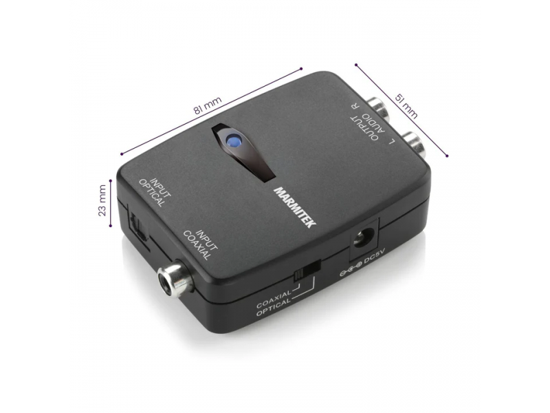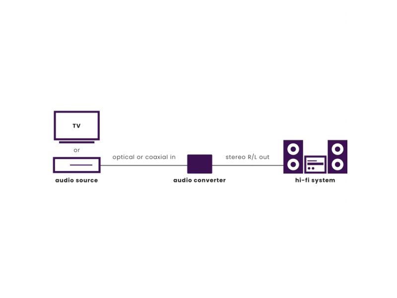 Per ottenere un buon suono del tuo moderno televisore tramite gli altoparlanti, si potrebbe verificare il seguente problema. Il televisore è solo dotato da un’uscita Toslink digitale o un'uscita coassiale, mentre preferisci usare l'ingresso analogico stereo rosso e bianco su un amplificatore. Grazie alle frequenze di campionamento fino a 192 kHz, questo convertitore garantisce una migliore riproduzione del suono.