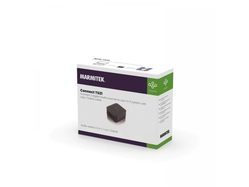 Utilizza questo switch audio se vuoi collegare 2 sorgenti audio a 1 ricevitore. Lo Switch TS21 commuta due ingressi ottici digitali (Toslink) su un'uscita senza ritardo o perdita di qualità. La commutazione avviene manualmente, tramite l'interruttore sullo switch. Con una frequenza di campionamento migliorata di 192 kHz per la migliore riproduzione del suono.